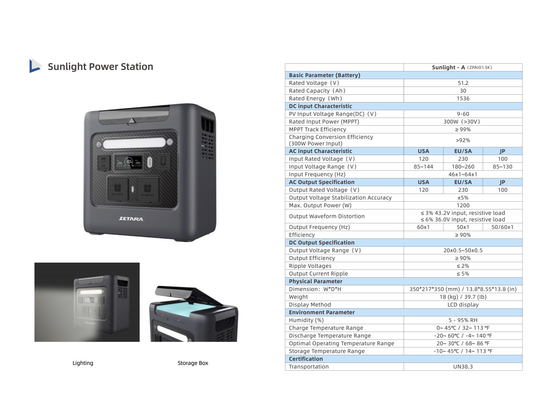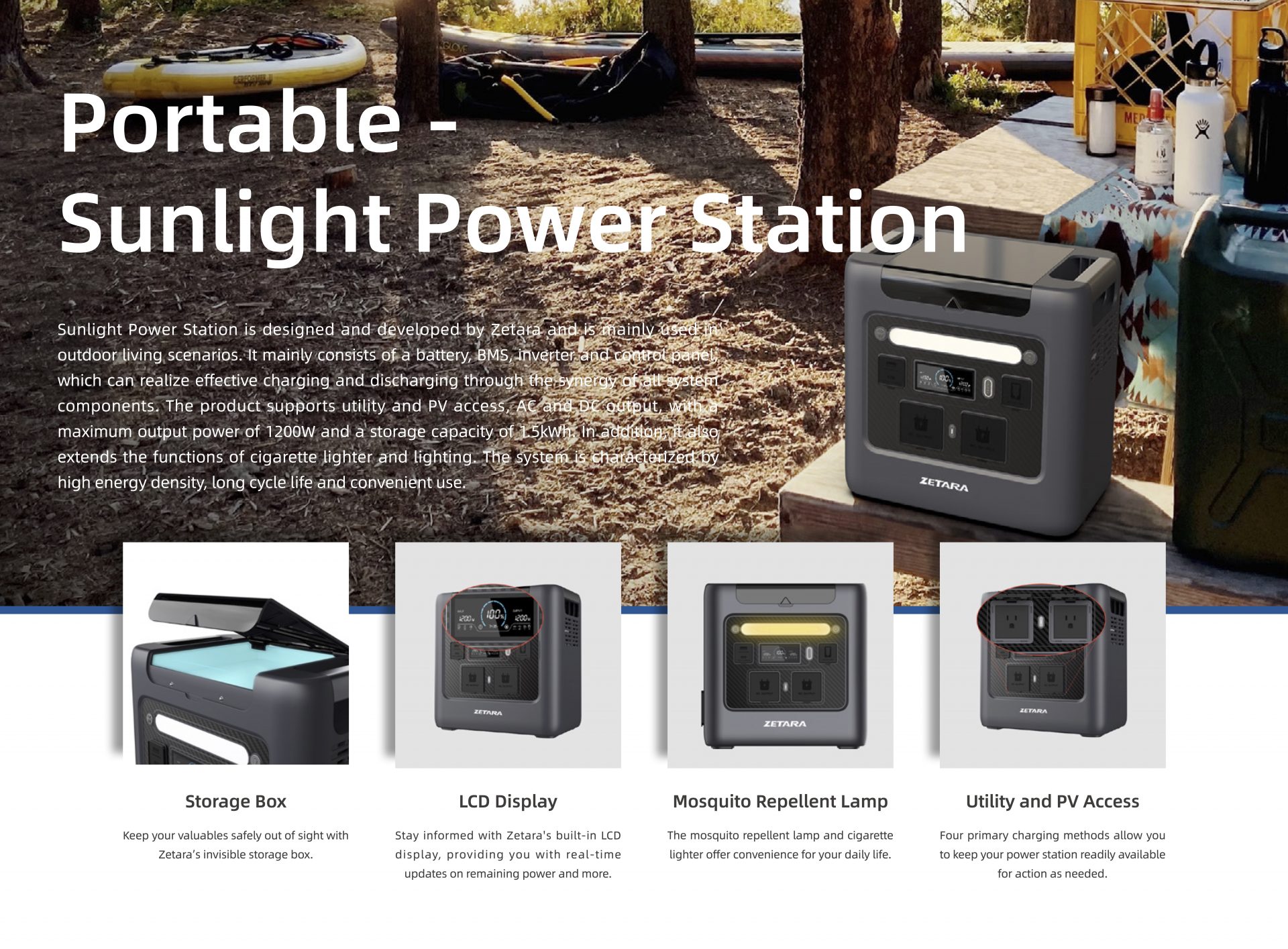 Zetara offers a 1.2kW/1.5kWh portable power station and is mainly used in outdoor living scenarios.